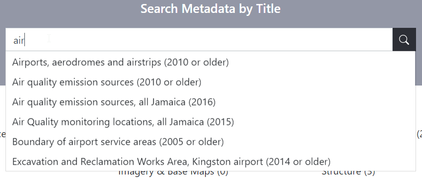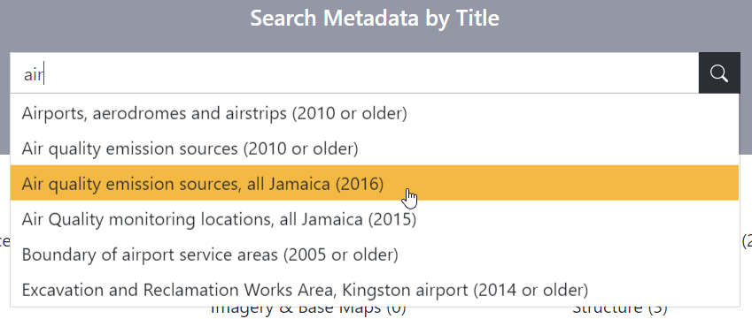 The quickest way to find a layer is to search for it by title. To search a layer by title, use the search form on the start page or on the Advanced Search page and start typing a name. Once you start typing, the layers that match your text will be suggested below the search input (Figure 2):
