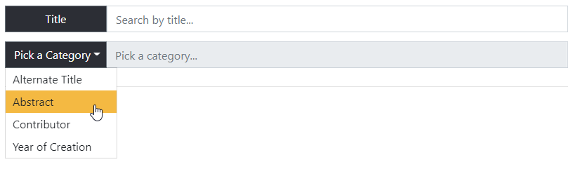 Pick what you would like to search by, using the [Pick a Category] dropdown and start typing in the text input next to the dropdown (Figure 6).