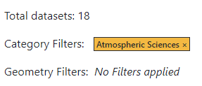So, although there are 21 layers in Atmospheric Sciences and Economy, not all of them are polygon layers (only 17 of those layers are polygon layers). For that reason, adding a geometry filter to a category filter usually returns fewer results then when using category filters only.
