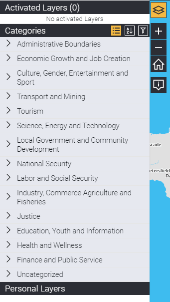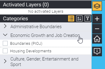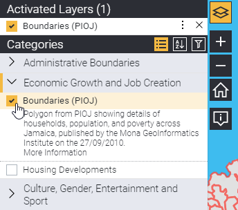Available layers are shown under Categories (Figure 11). Each layer belongs to a category. If the administrator has not assigned the layer to a category yet, it will show up under Uncategorized.