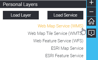 To add a web service, expand Personal Layers and then click [Load Service] and select the service type you would like to add to the viewer (Figure 17). You are then prompted to add a URL to the service.