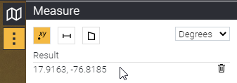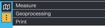 The map is always visible but the side panels can be toggled by clicking a button. In addition to these elements there are buttons that are not part of a panel (map navigation, identification of features, etc.).