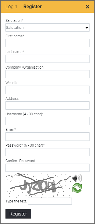 In the following popup activate the [Register] tab and enter the required information (Figure 3). You will be sent an email to confirm the registration.