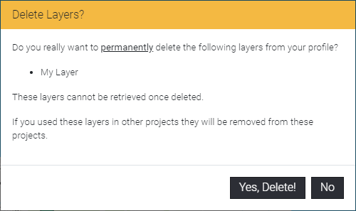 | [Yes, Delete!] | Removes the layer from display and permanently deletes it from your account. |