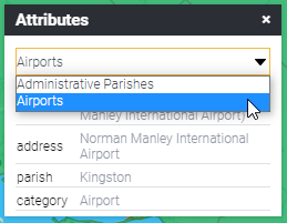 Note that the clicked layer name is presented in a dropdown. In some cases, features from multiple layers overlap. If this happens you can switch to the correct layer in the dropdown (Figure 56):