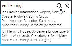 Activate the search input field by clicking Search in the upper navigation bar. Type in a search word and then click the [Search] button (magnifying glass). You will then be provided with search results. You can click a result to zoom to it on the map (Figure 57).